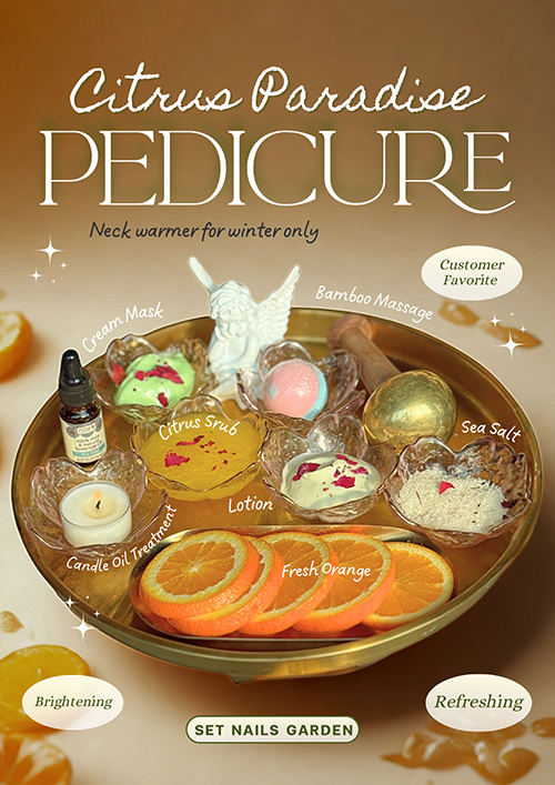 ● Enjoy an 18-minute Hot Stone & Candle Oil Massage to soothe muscles, followed by a detoxifying mask and collagen socks to deeply nourish. Finish with rich lotion for lasting moisture.